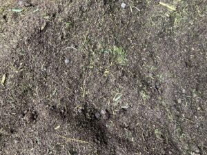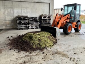 まずは竹チップと堆肥を混ぜて散布するところから。